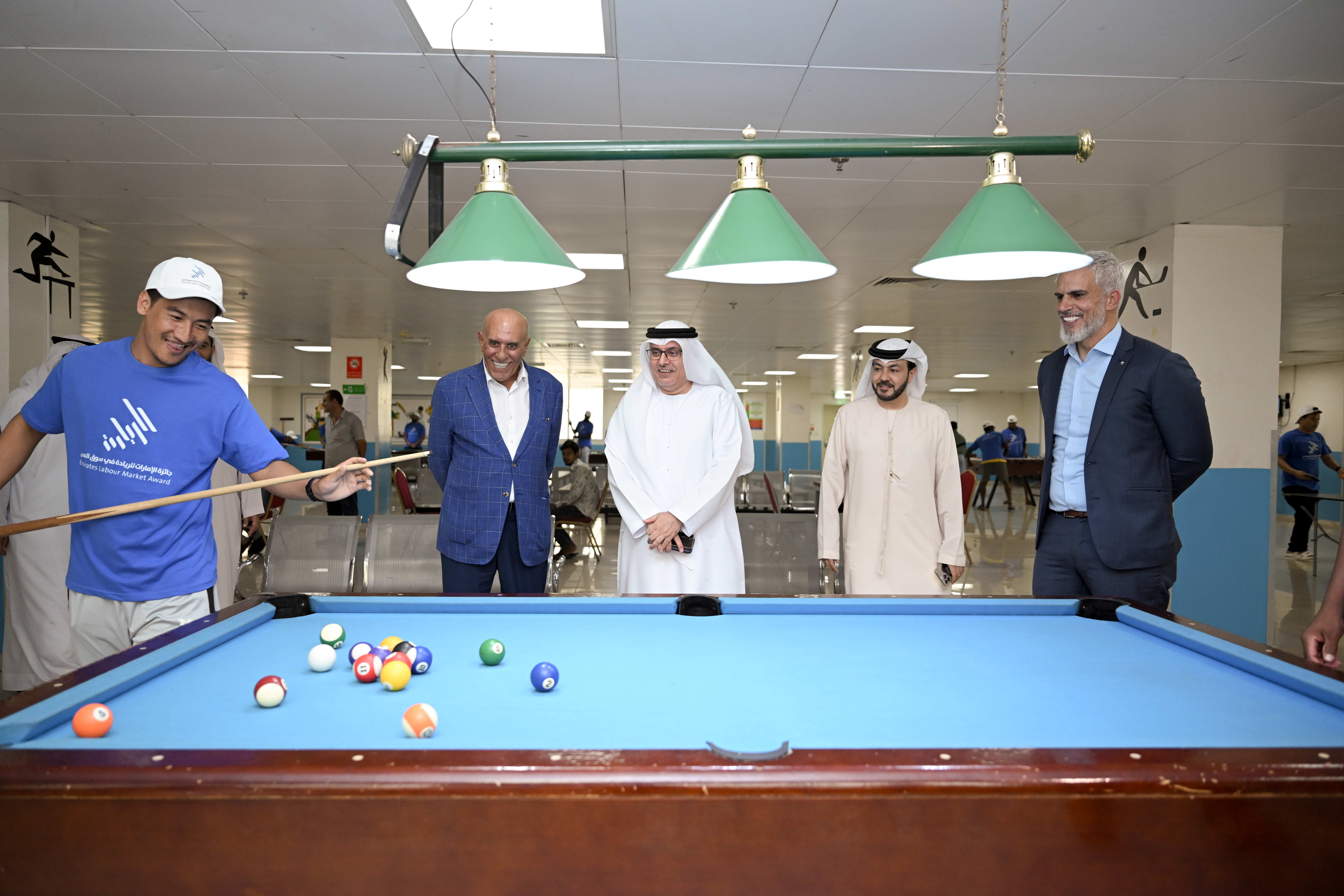 زار معالي الدكتور عبد الرحمن العور ، وزير الموارد البشرية والتوطين، يرافقه قيادت الوزارة، السكن العمالي التابع لشركة "القرية العمالية للعقارات" في أبوظبي والفائزة ضمن فئة الشركات الأفضل استثمارا في السكنات العمالية في الدورة الأولى من جائزة الإمارات للريادة في سوق العمل، وذلك ضمن الزيارات التي يقوم بها في إطار احتفال الدولة بـ "اليوم العالمي للعمال" الذي يصادف الأول من شهر مايو من كل عام.