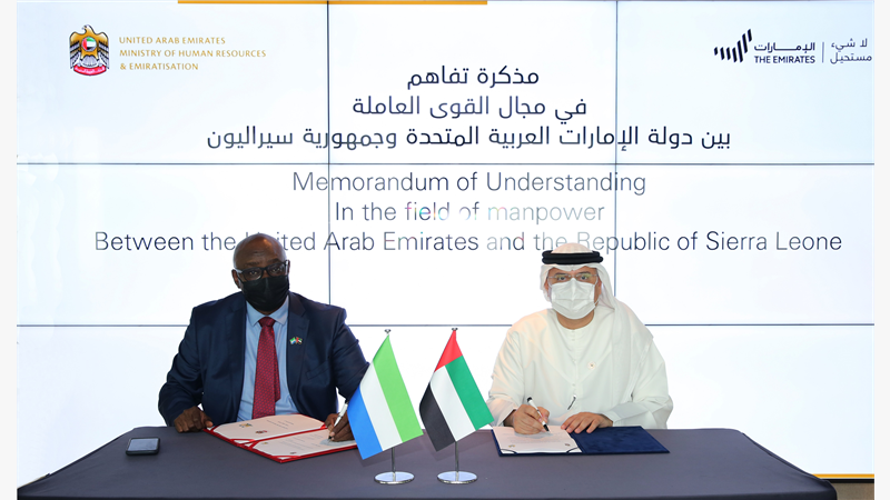 وقعت دولة الامارات وجمهورية سيراليون مذكرة تفاهم في مجال القوى العاملة تستهدف تحسين إدارة دورة العمل التعاقدي للعمال القادمين من سيراليون للعمل في الدولة.