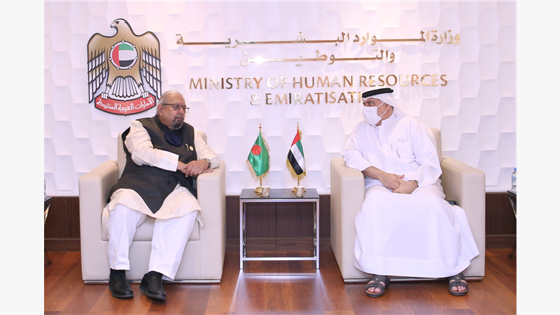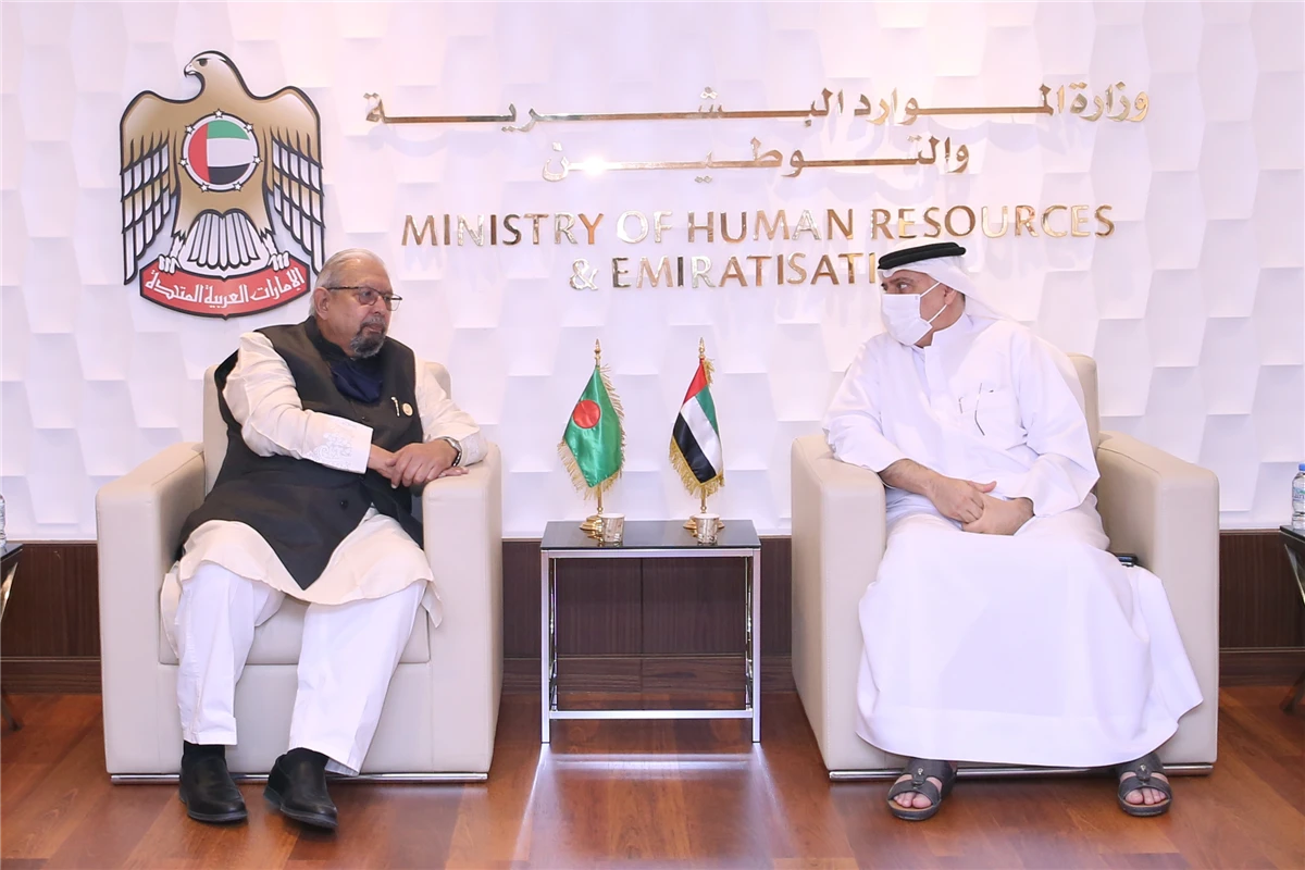 بحث معالي الدكتور عبد الرحمن العور وزير الموارد البشرية والتوطين مع معالي عمران أحمد وزير رعاية المغتربين والتوظيف الخارجي في جمهورية بنجلاديش سبل تعزيز التعاون بين البلدين الصديقين في مجال القوى العاملة.