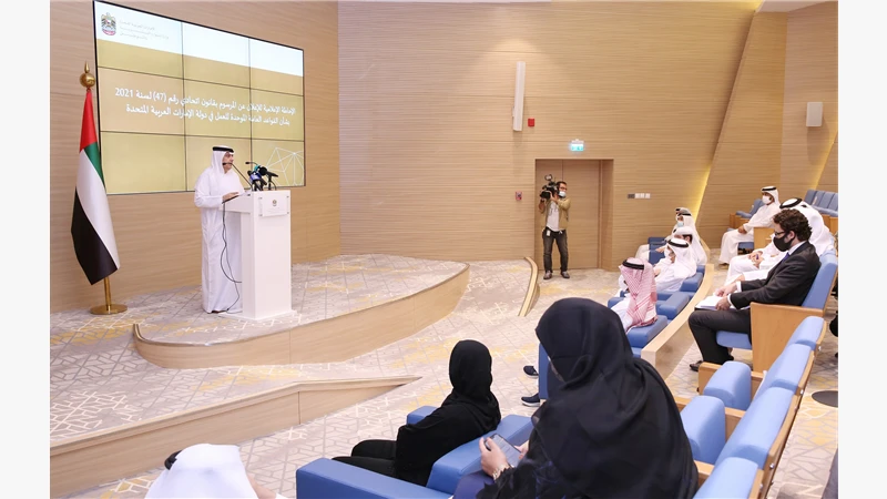جاء ذلك خلال احاطة اعلامية عقدها معاليه اليوم " الإثنين " للإعلان عن تفاصيل المرسوم بقانون اتحادي بشأن القواعد العامة الموحدة للعمل في دولة الإمارات الذي اعتمده صاحب السمو الشيخ خليفة بن زايد ال نهيان رئيس الدولة حفظه الله ضمن أكبر تغييرات تشريعية في تاريخ الدولة بتحديث أكثر من 40 قانوناً بما يتناسب مع رؤية القيادة الرشيدة وطموحات المجتمع ويلبي في نفس الوقت تطلعات قطاعات محورية ومتنوعة ويعزز مكانة الدولة وتنافسيتها وموقعها على خارطة المستقبل.