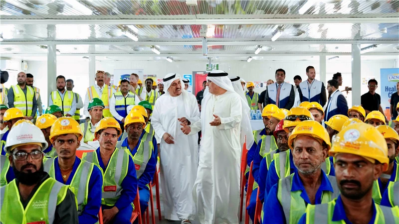 واستمع معاليه خلال الزيارة يرافقه عدد من قيادات الوزارة لشرح مفصل من طارق خانصاحب رئيس مجلس إدارة شركة خانصاحب للهندسة المدنية حول مبادرات الشركة المستدامة للعمال والإجراءات التي تتخذها لتوفير بيئة عمل تلبي معايير واشتراطات الصحة والسلامة المهنية لا سيما من حيث توفير مكان لاستراحة العمال خلال فترة "حظر العمل وقت الظهيرة" وتزويده بأجهزة التبريد والمياه الباردة، وغيرها من الوسائل التي تضمن سلامتهم الصحية وراحتهم وسعادتهم.