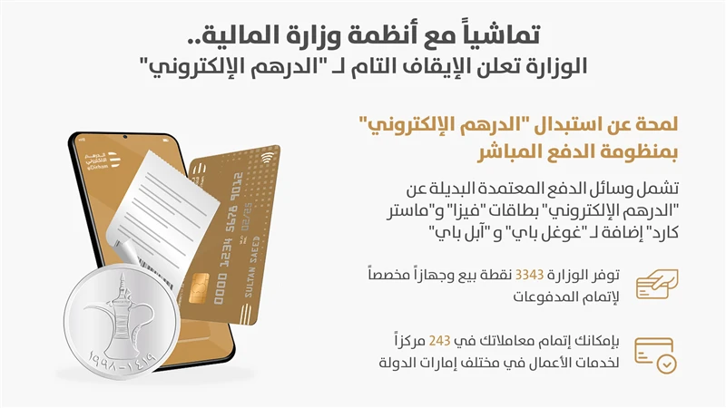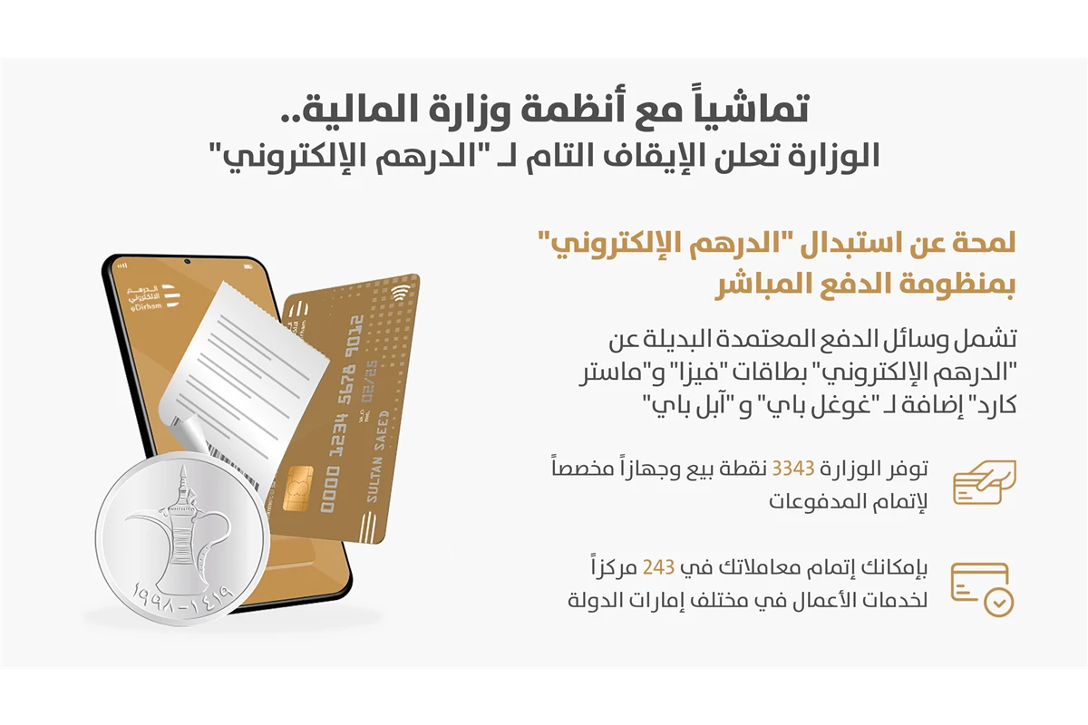 وتأتي خطوة الوزارة بعد أن نجحت منذ شهر سبتمبر الماضي بالتحول التدريجي من منظومة "الدرهم الإلكتروني" إلى منظومة الدفع المباشر بالتعاون مع مصرف أبوظبي الإسلامي، وبما ينسجم مع إعلان سابق لوزارة المالية يقضي بتوقف الجهات الحكومية تدريجياً عن استخدام المنظومة السابقة.