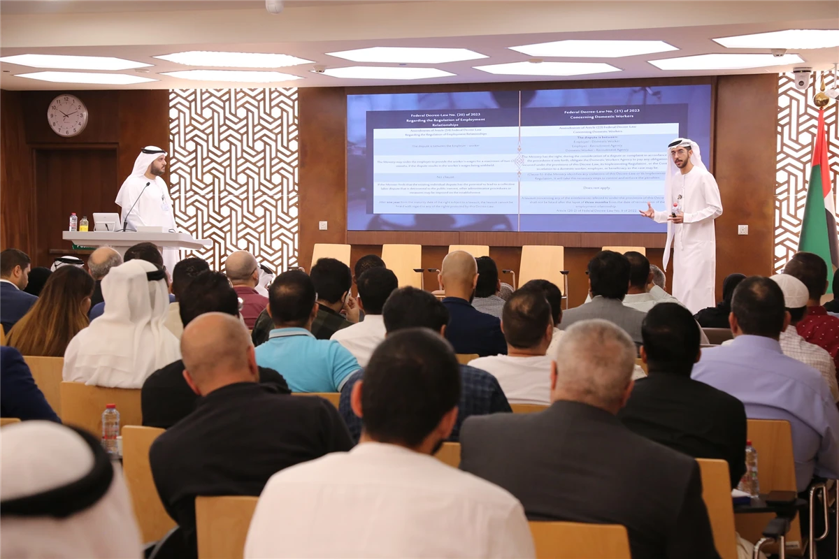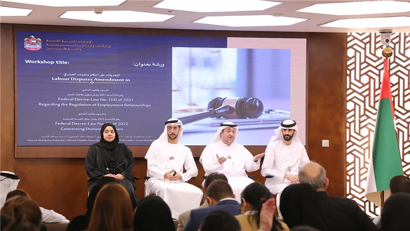 نظمت وزارة الموارد البشرية والتوطين ورشة للتوعية بآلية البحث والفصل في المنازعات العمالية وفقا للمرسوم بقانون اتحادي رقم 20 لسنة 2023 بتعديل بعض أحكام المرسوم بقانون اتحادي رقم 33 لسنة 2021 بشأن تنظيم علاقات العمل، والمرسوم بقانون اتحادي رقم 21 لسنة 2023 بتعديل بعض أحكام المرسوم بقانون اتحادي رقم 9 لسنة 2022 بشأن عمال الخدمة المساعدة وذلك بحضور القانونيين في عدد من شركات القطاع الخاص ووسائل الإعلام.
