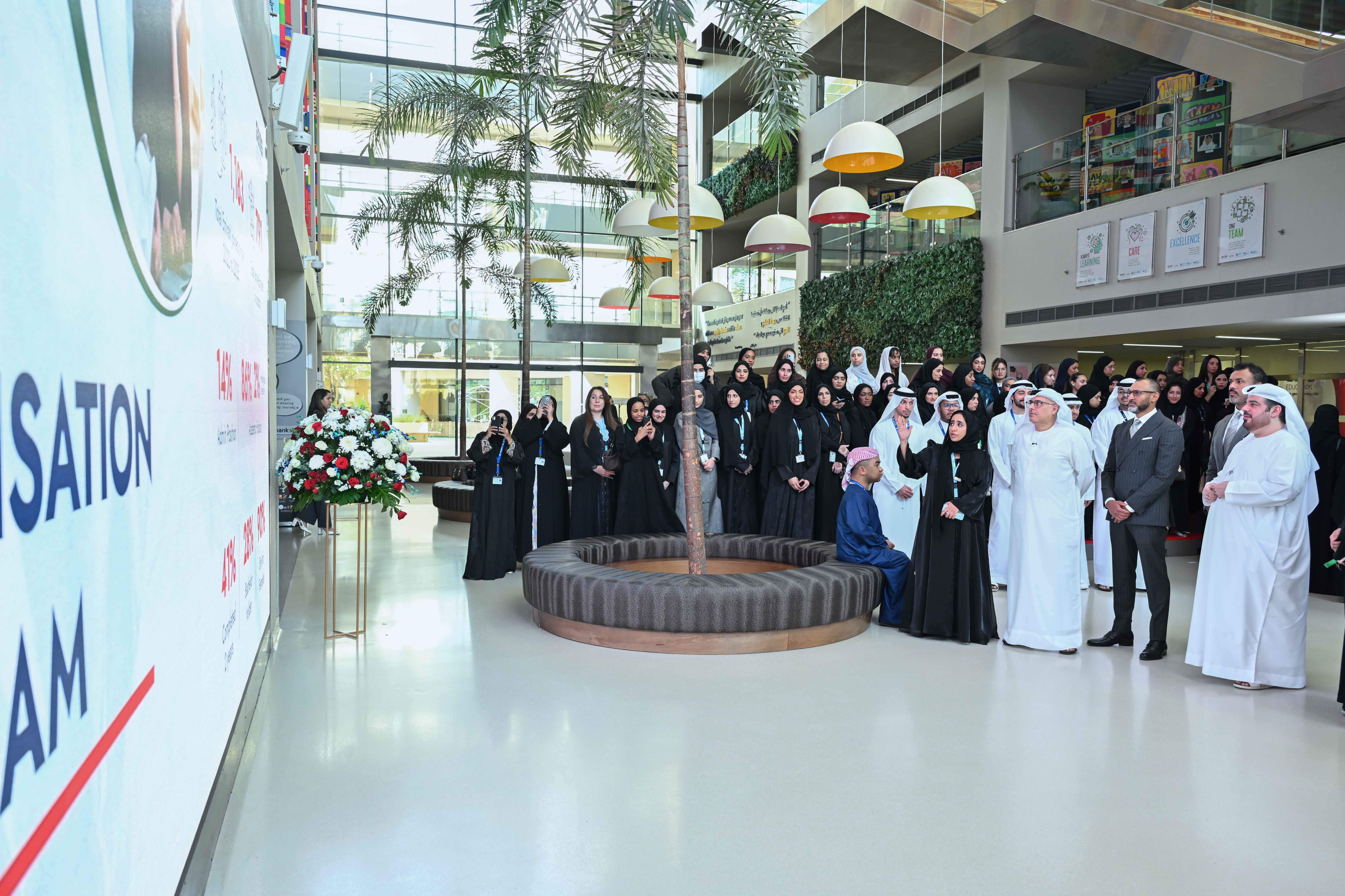 وتم التأكيد خلال لقاء معاليه بالمسؤولين في المدرسة على أهمية دور الكادر المواطن، وتنافسيته في القطاع التعليمي، والقيمة المضافة التي يحققها للقطاع عبر دعمه لمسيرة الابتكار وقدرته على استيعاب المتطلبات التعليمية العصرية المرتبطة باقتصاد المستقبل، في ضوء جاهزيته، ومستوى التأهيل الرائد للمؤسسات الأكاديمية والجامعات في الدولة، وبرنامج" نافس".