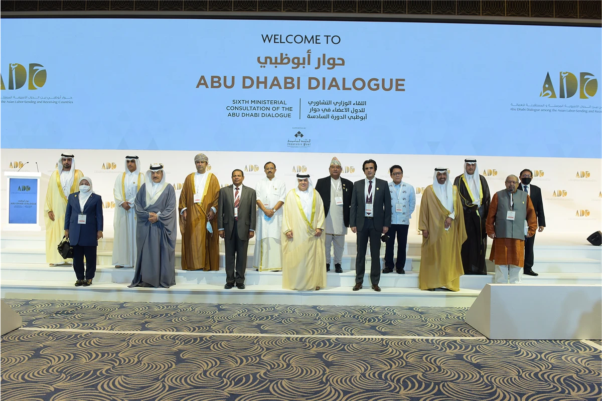ويعتبر حوار أبو ظبي الذي تأسس في العام 2008 أول منتدى إقليمي للحوار والتعاون بين الدول الآسيوية المرسلة والمستقبلة للعمال بهدف التعرف على أفضل الممارسات لتنقل العمالة بين هذه الدول حيث يضم في عضويته الامارات والسعودية والكويت وعمان البحرين وقطر وماليزيا الى جانب أفغانستان وبنغلاديش والصين والهند وإندونيسيا ونيبال وباكستان والفلبين وسريلانكا وتايلاند وفيتنام.