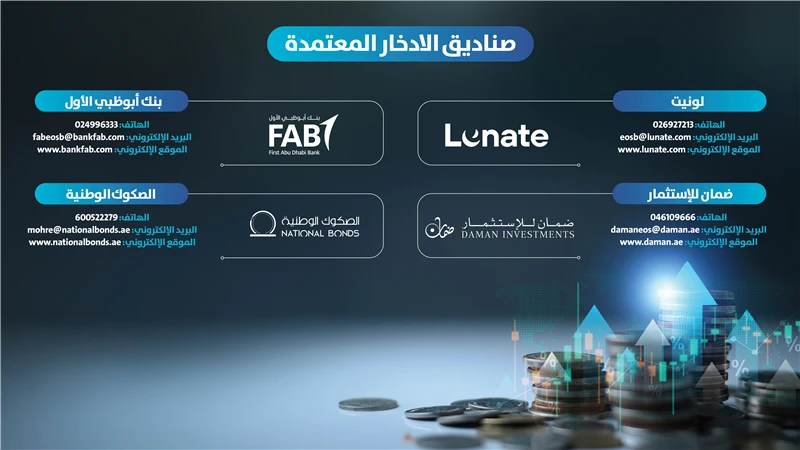 وتوفر وزارة الموارد البشرية والتوطين على موقعها الالكتروني www.mohre.gov.ae كافة المعلومات بشأن صناديق الادخار المعتمدة والتي يتم تحديثها دوريًا فضلا عن تفاصيل حول نظام الادخار " الاختياري البديل لمكافأة نهاية الخدمة للعاملين في القطاع الخاص.