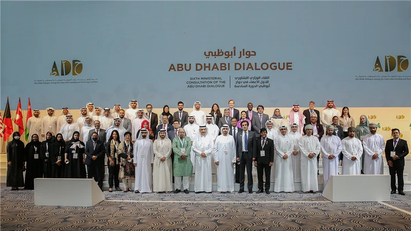 يذكر ان حوار أبو ظبي الذي تأسس في العام 2008 يعتبر أول منتدى إقليمي للحوار والتعاون بين الدول الآسيوية المرسلة والمستقبلة للعمال بهدف التعرف على أفضل الممارسات لتنقل العمالة بين هذه الدول حيث يضم في عضويته الامارات والسعودية والكويت وعمان البحرين وقطر وماليزيا الى جانب أفغانستان وبنغلاديش والصين والهند وإندونيسيا ونيبال وباكستان والفلبين وسريلانكا وتايلاند وفيتنام.
