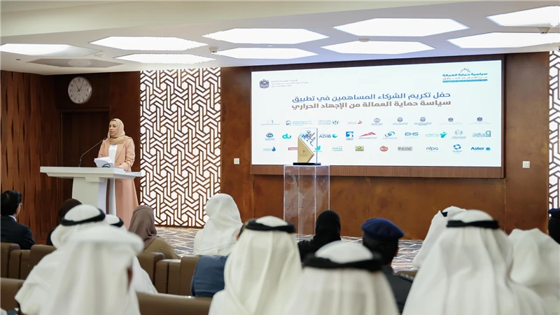 كرمت وزارة الموارد البشرية والتوطين في حفل نظمته في مبناها بدبي، 21 جهة من شركائها في الجهات الحكومية الاتحادية والمحلية والقطاع الخاص لمساهمتهم بفاعلية في حملة سياسة "حماية العمالة من الاجهاد الحراري" لهذا العام والتي اختتمت في 15 سبتمبر الجاري، بنسبة التزام بلغت 99% من الشركات.