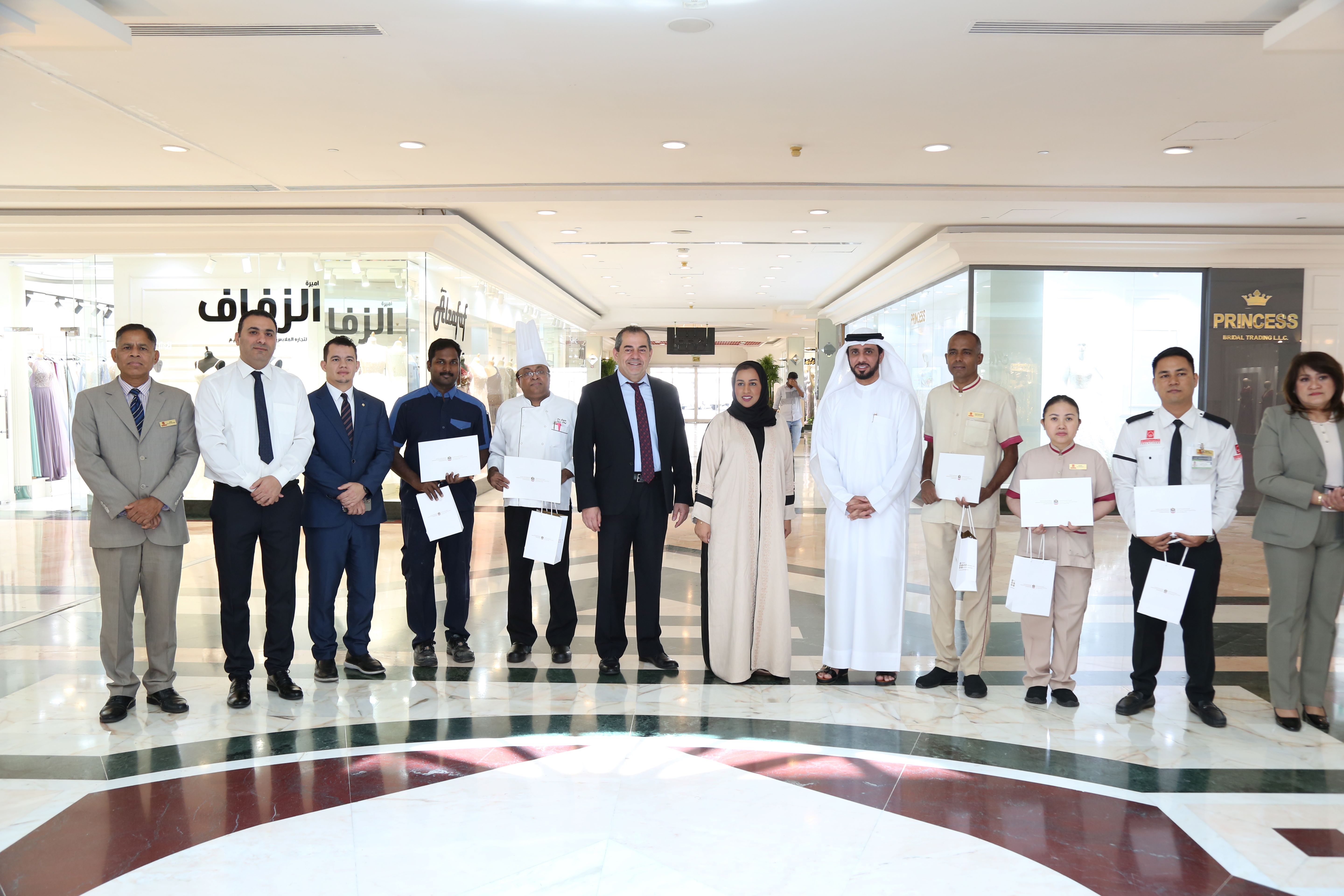 كرمت وزارة الموارد البشرية والتوطين عمالة مساعدة في مواقع عملهم لدى عدد من الأسر المواطنة والمقيمة في الدولة فضلا عن تكريم عمال تقديم خدمات في مواقع عملهم لدى مراكز التسوق وكذلك عمال تقديم الخدمات العاملين لدى الوزارة وذلك في إطار الفعاليات الاحتفالية التي نظمتها الوزارة بمناسبة "يوم العمال العالمي" الذي صادف الأول من شهر مايو.