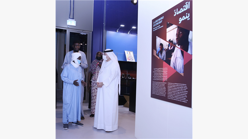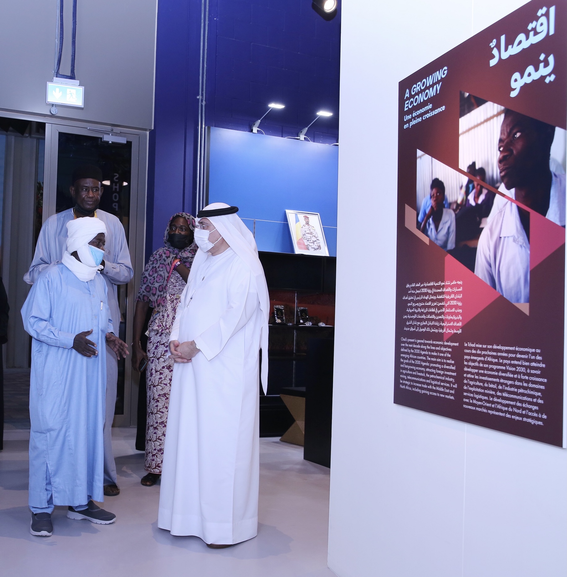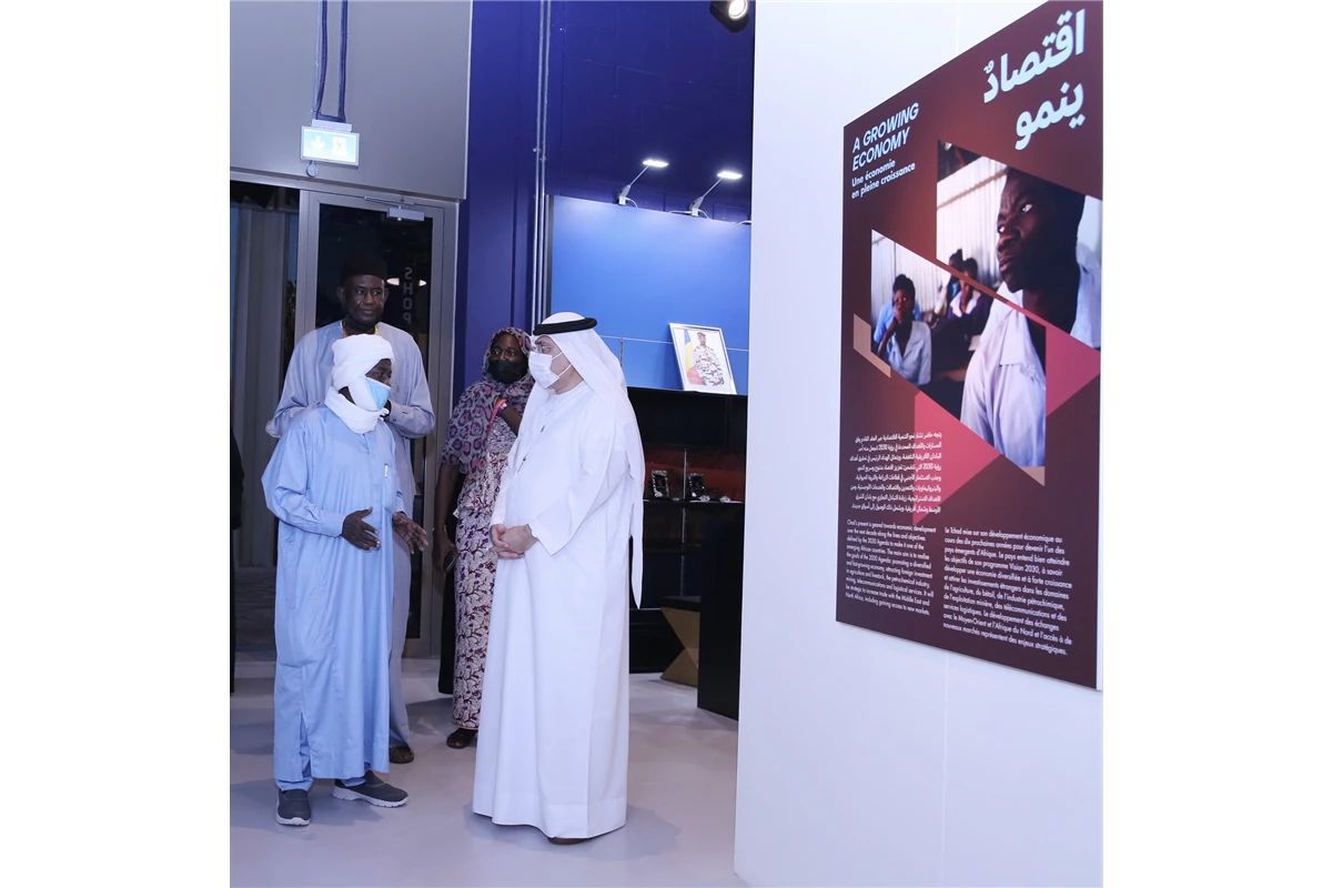 واستمع معاليه الى شرح مفصل قدمه أساني عبد الرحمن نائب المفوض العام للجناح حول المعالم الشهيرة والمناطق المختلفة لتشاد وما تشتهر به من إمكانات وقدرات مكنتها من الانطلاق نحو التنمية وريادة الأعمال.