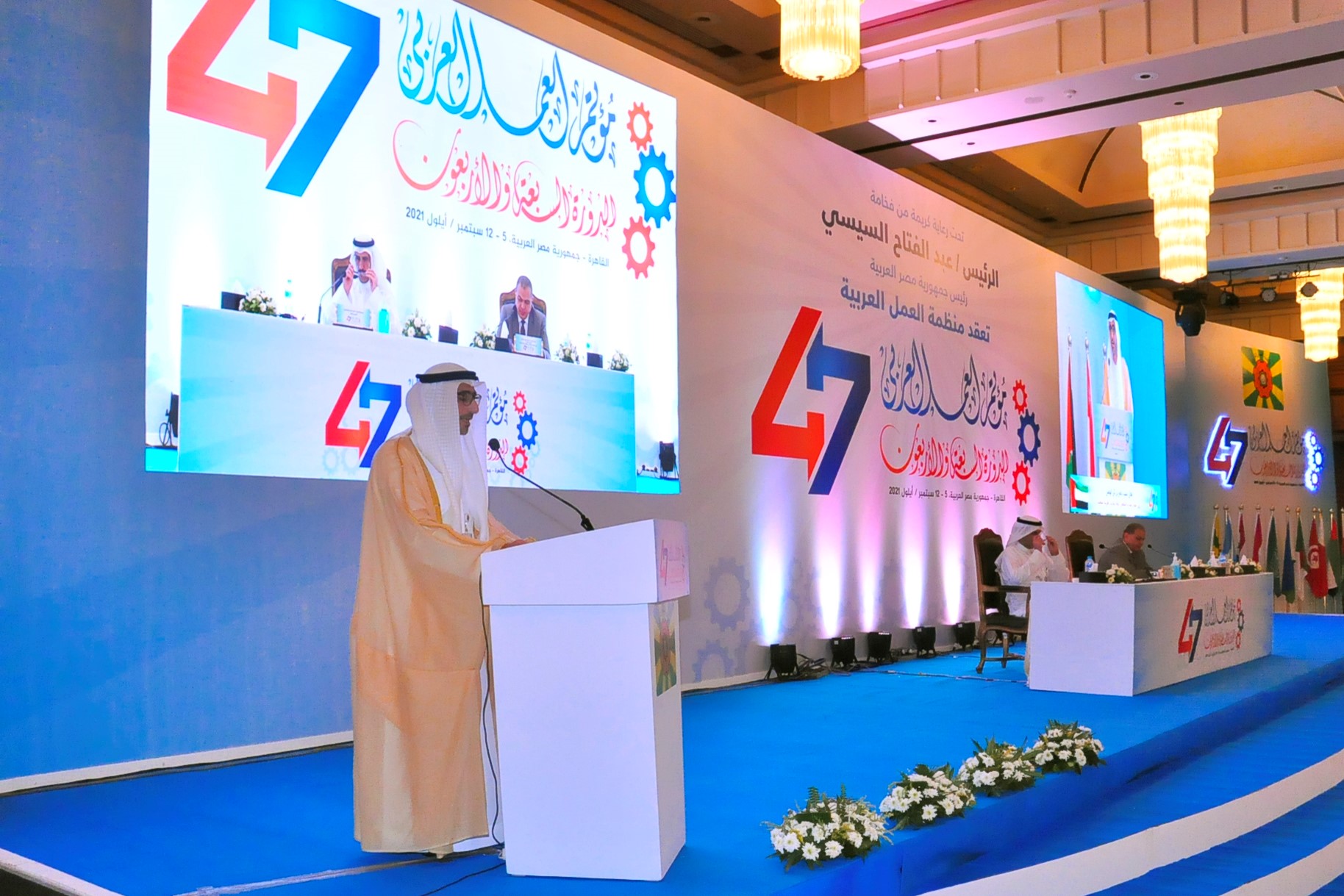 جاء ذلك خلال مشاركة معاليه على رأس وفد الدولة في الدورة 47 لمؤتمر العمل العربي الذي يعقد اعماله في القاهرة خلال الفترة من 5 – 12 سبتمبر الجاري.