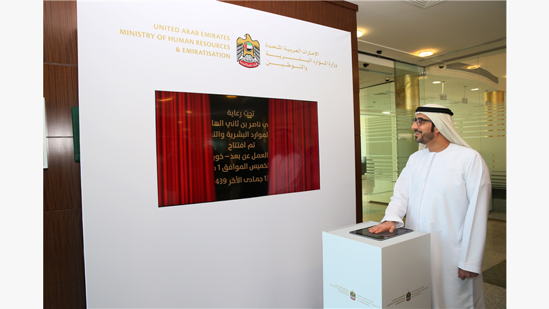 افتتاح معالي وزير الموارد البشرية والتوطين مقر العمل عند بعد بخورفكان مارس 2018