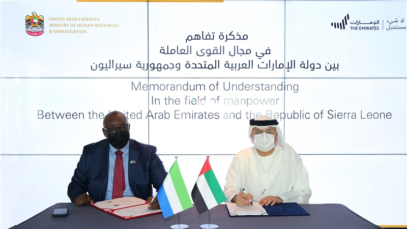 The United Arab Emirates and the Republic of Sierra Leone have signed a Memorandum of Understanding in the field of manpower to enhance the management of the contractual work cycle for Sierra Leonean workers coming into the country.