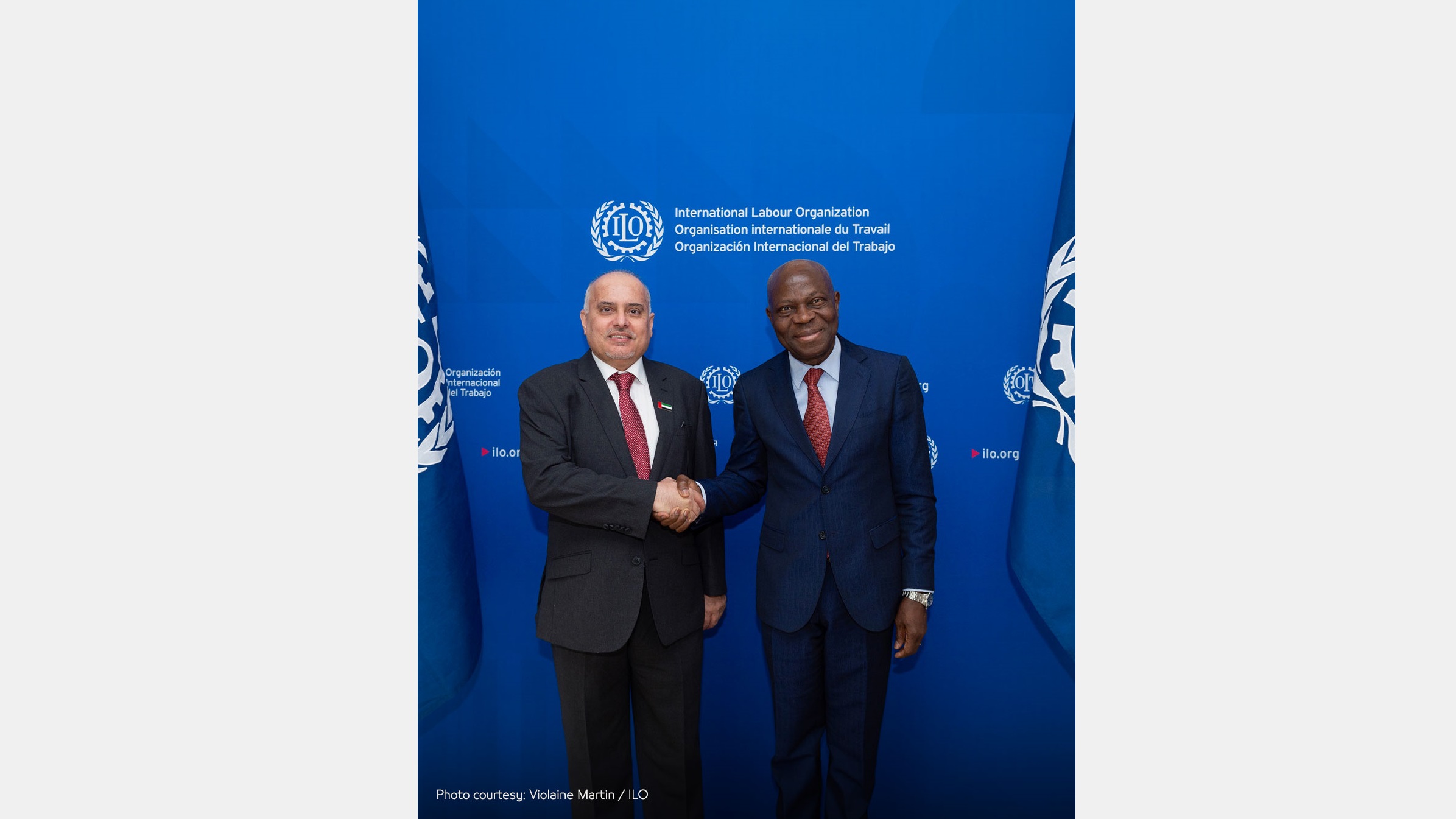 The announcement was made in a meeting between His Excellency Dr. Abdulrahman Al Awar, Minister of Human Resources and Emiratisation, and His Excellency Gilbert F. Houngbo, Director-General of the International Labour Organisation (ILO), on the sidelines of the Conference.