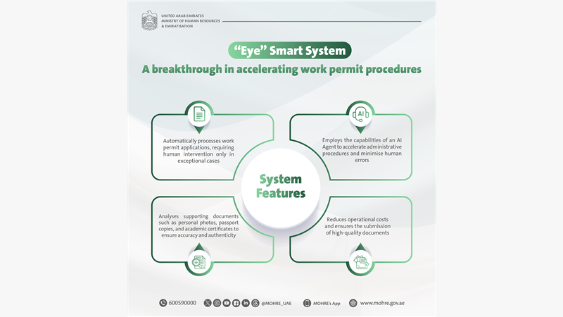 The Ministry of Human Resources and Emiratisation (MoHRE) launched its AI-powered system “Eye” during its participation at GITEX Global 2025, marking a significant advancement in accelerating work permit issuance by automatically processing applications and minimising the need for human intervention except in exceptional cases.