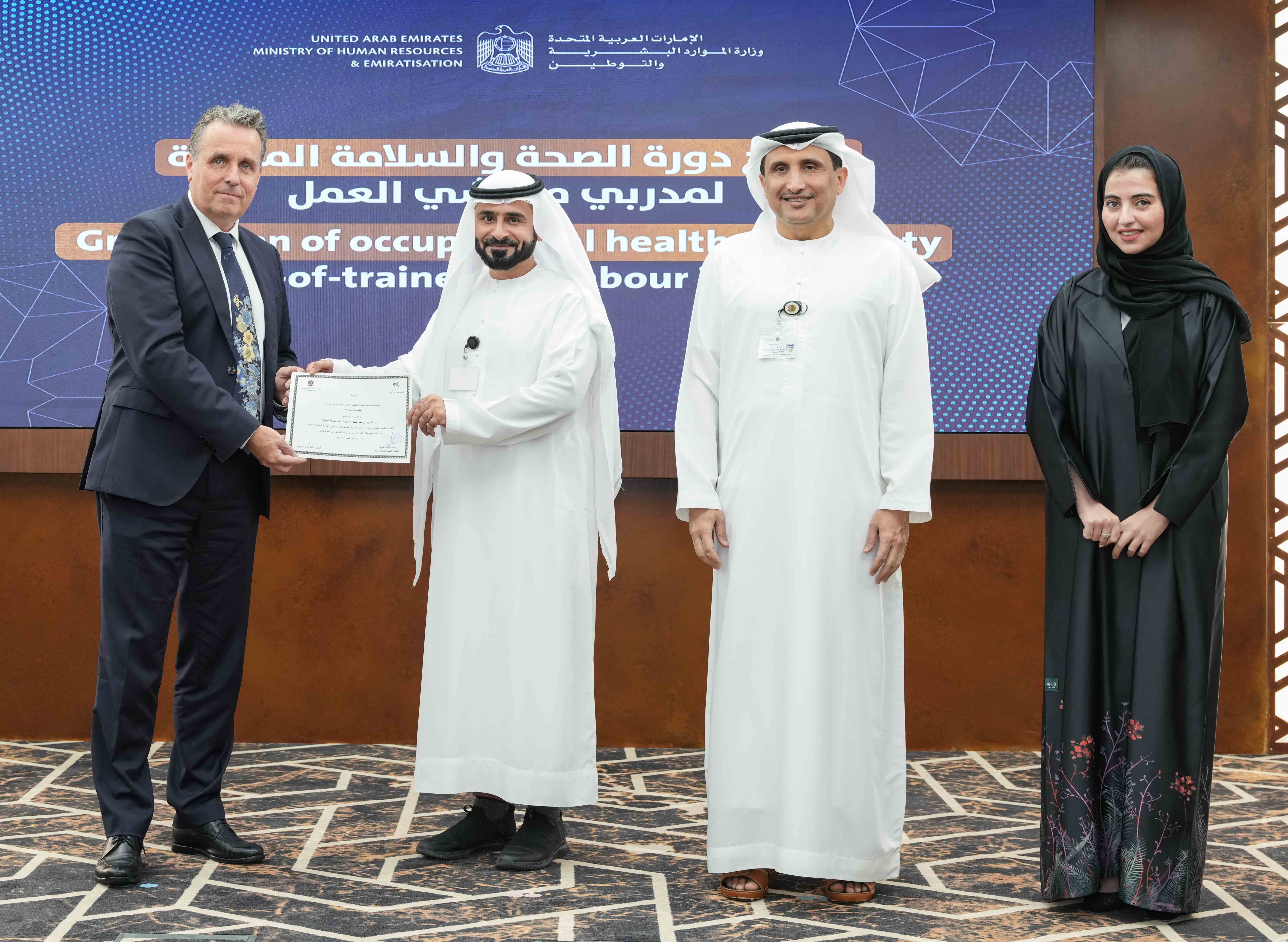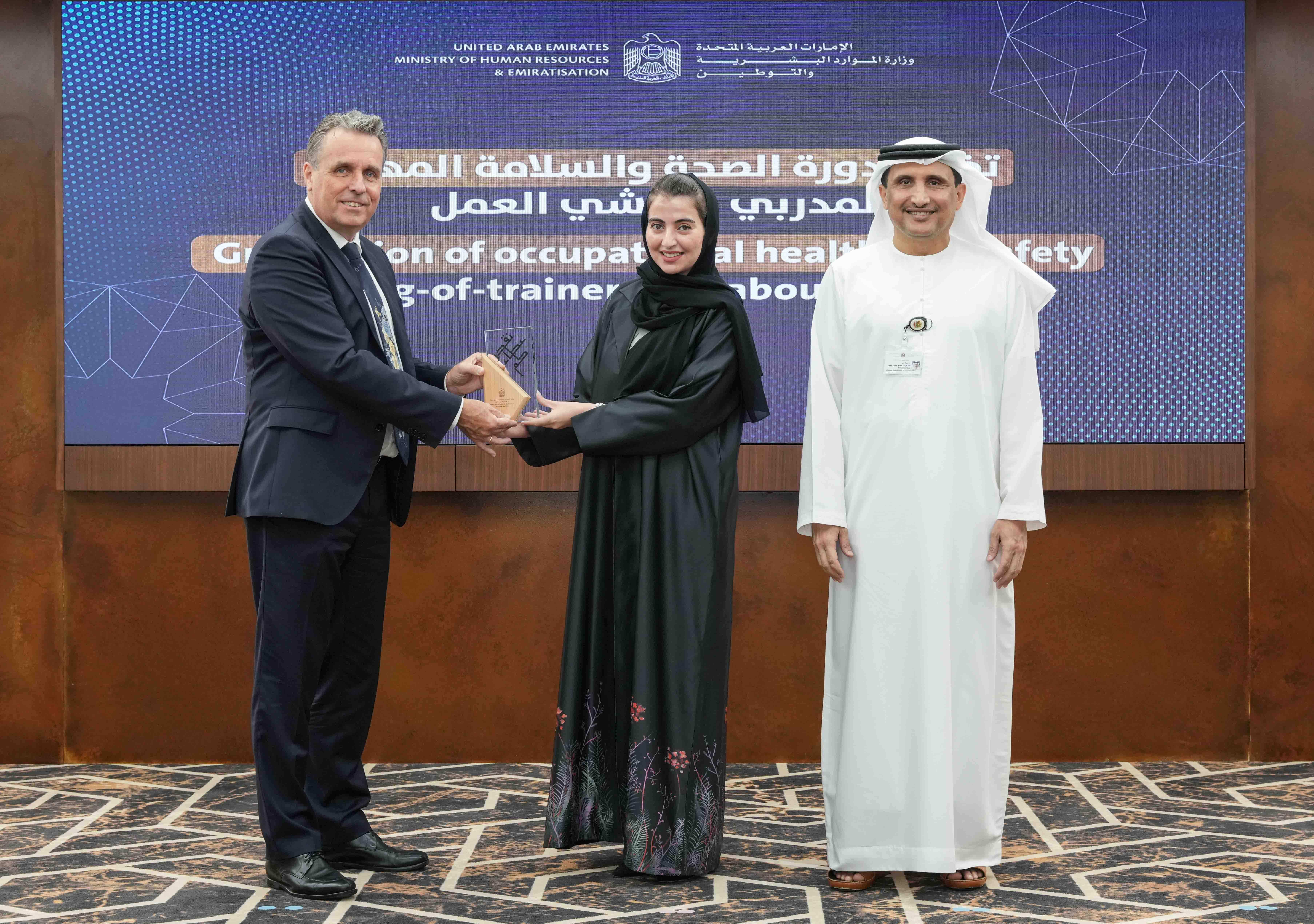 On the sidelines of the meeting and in the presence of His Excellency Mohsin Al Nassi, MoHRE’s Assistant Undersecretary of Inspection Affairs, a graduation ceremony was held for 30 labour inspectors from MoHRE who completed the requirements of a training programme organised by the Ministry in collaboration with the ILO to develop inspectors’ skills, and capabilities to monitor forced labour, in line with best practices and global standards.
