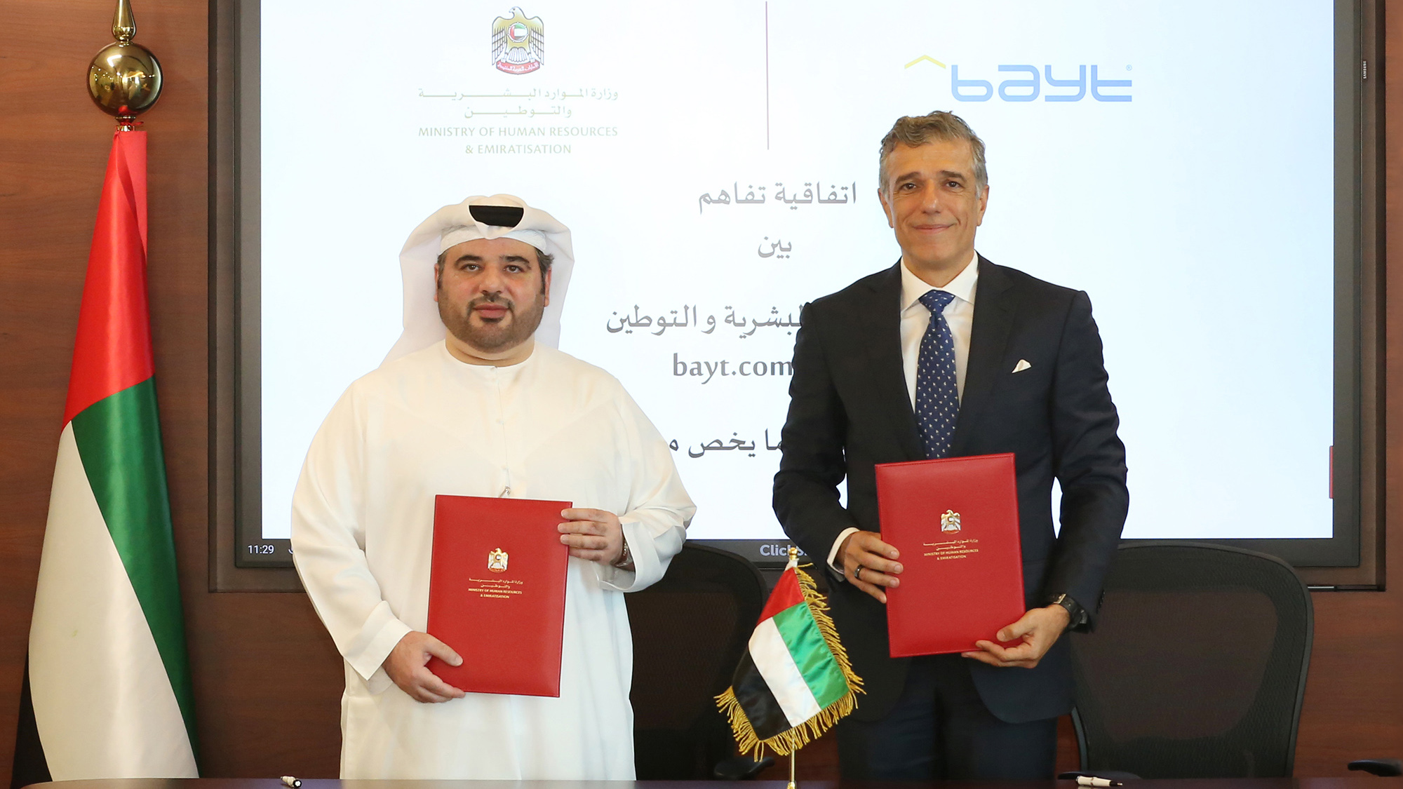 The Ministry of Human Resources and Emiratisation (MoHRE) has signed a Memorandum of Understanding (MoU) with Bayt.com, one of the leading job search and recruitment platforms in the region.