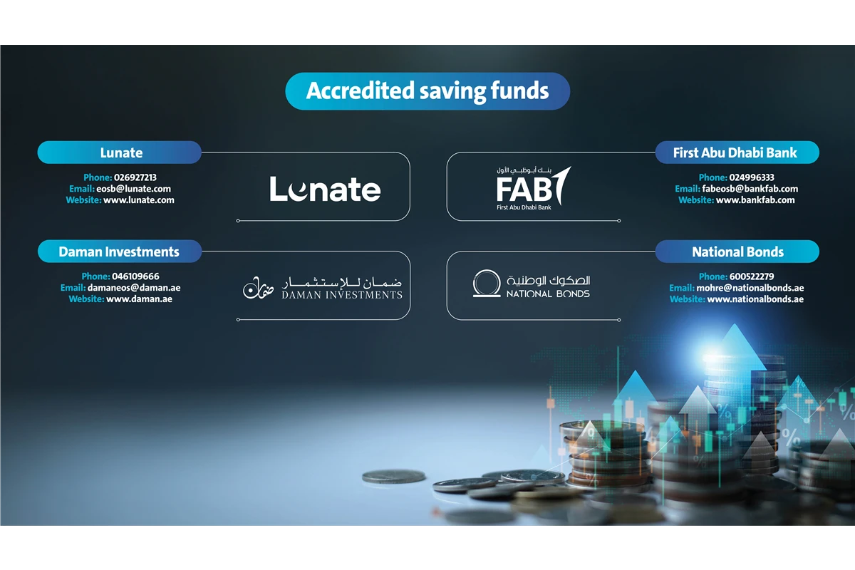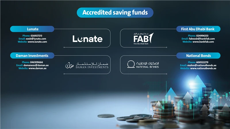 وتوفر وزارة الموارد البشرية والتوطين على موقعها الالكتروني www.mohre.gov.ae كافة المعلومات بشأن صناديق الادخار المعتمدة والتي يتم تحديثها دوريًا فضلا عن تفاصيل حول نظام الادخار " الاختياري البديل لمكافأة نهاية الخدمة للعاملين في القطاع الخاص.