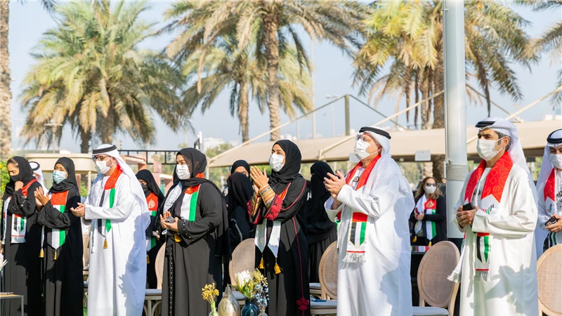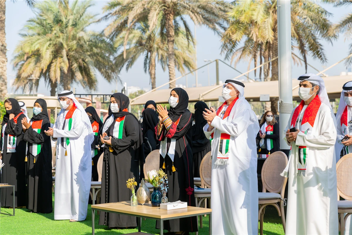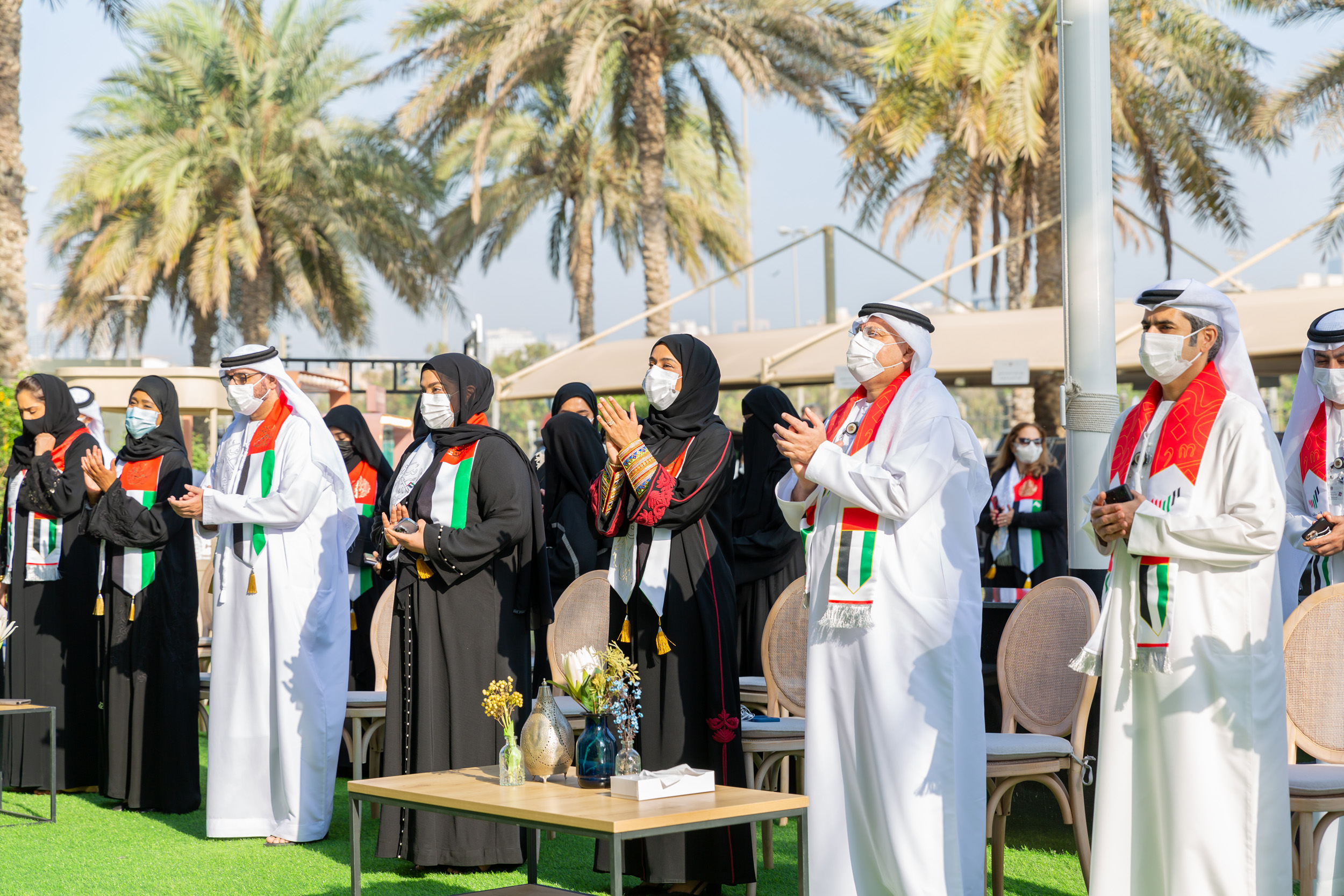 This ceremony which was held in the joint courtyard of the two ministries in Dubai began with the National Anthem played on the violin by “Khawla Saeed Al Raihi”, a student in Zayed University. The ceremony conveyed and reflected national patriotism, loyalty and belonging to the nation and leadership; the national occasion is consolidated in the hearts of the UAE citizens and residents alike.