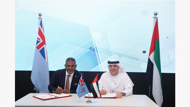 His Excellency Dr Abdul Rahman Al Awar, Minister of Human Resources and Emiratisation, and His Excellency FAIYAZ Koya, Minister of Commerce, Trade, Tourism and Transport of the Republic of Fiji, signed a Memorandum of Understanding on Manpower on the sidelines of the World Government Summit.