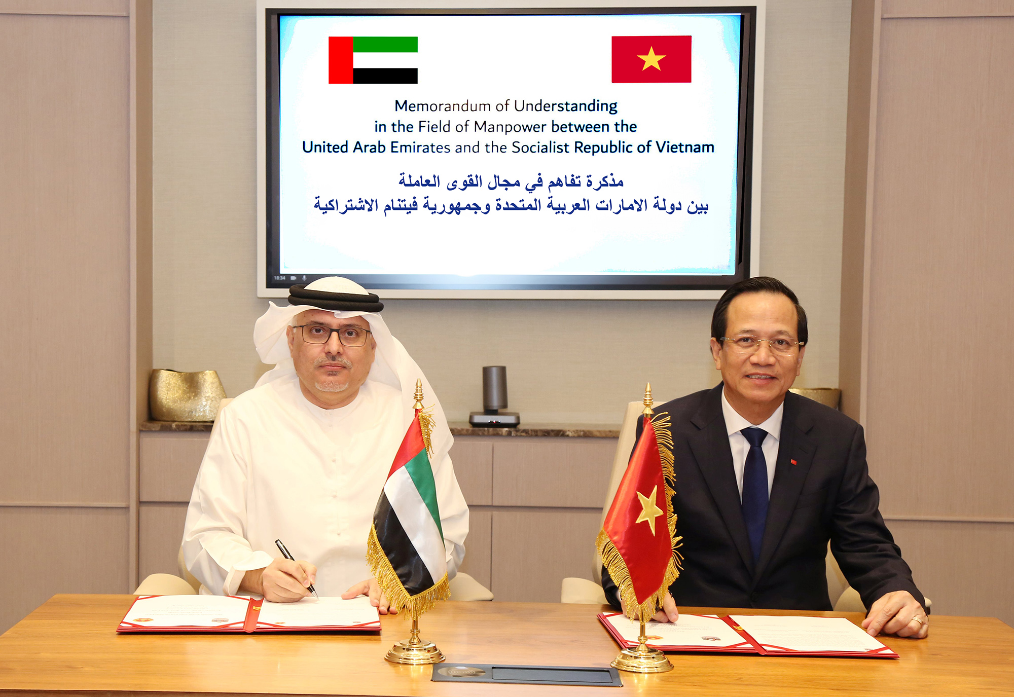 The UAE and Vietnam have signed a memorandum of understanding (MoU) regarding workforce, with His Excellency Dr. Abdulrahman Al Awar, Minister of Human Resources and Emiratisation, signing on behalf of the UAE and His Excellency Dao Ngoc Dung, Minister of Labour, Invalids, and Social Affairs of Vietnam, representing his country.