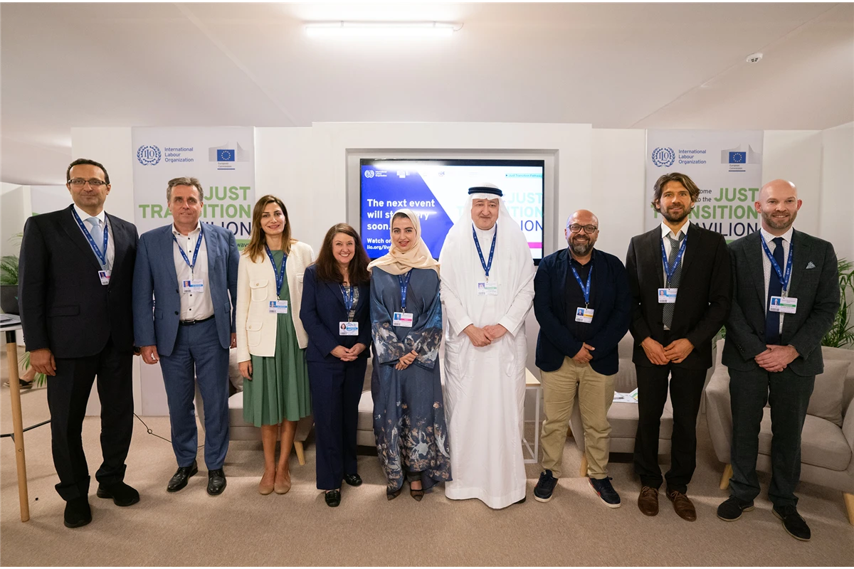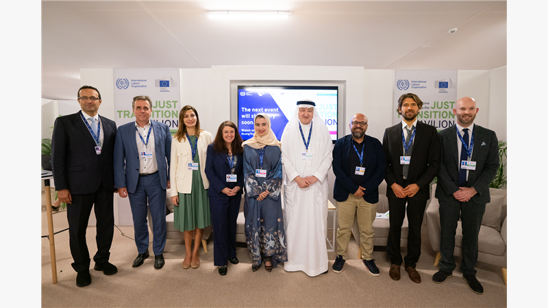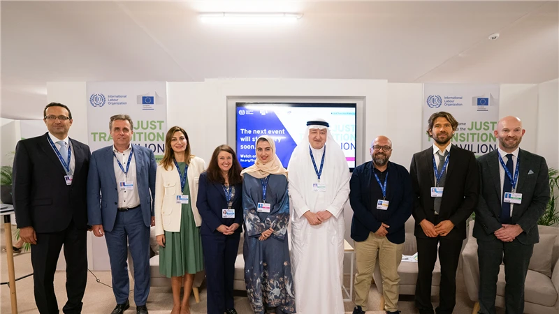 The ILO and the Islamic Development Bank released a report titled “The social and employment impacts of decarbonization and green industrial growth scenarios for the Middle East and North Africa region,” during the session, which brought together Her Excellency Shayma Al Awadhi, Assistant Undersecretary for Communication and International Relations at the Ministry of Human Resources and Emiratisation (MoHRE); His Excellency Gert Jan Koopman, Director-General of the European Union’s Directorate-General for Neighbourhood and Enlargement Negotiations; El Sayed Torky, Senior Advisor at the Federation of Egyptian Industries; and Mohamed Al Maita from the Arab Trade Union Confederation, with various international organisations present, along with individuals interested in the fields of labour and climate change.