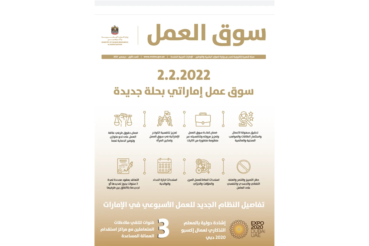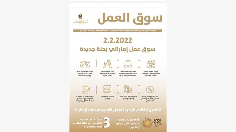 The publication of the magazine is in line with the Ministry's instructions aimed at increasing the awareness of both parties to the employment relationship of their rights and obligations towards each other in accordance with the provisions of the legislation regulating labor relations in the UAE.