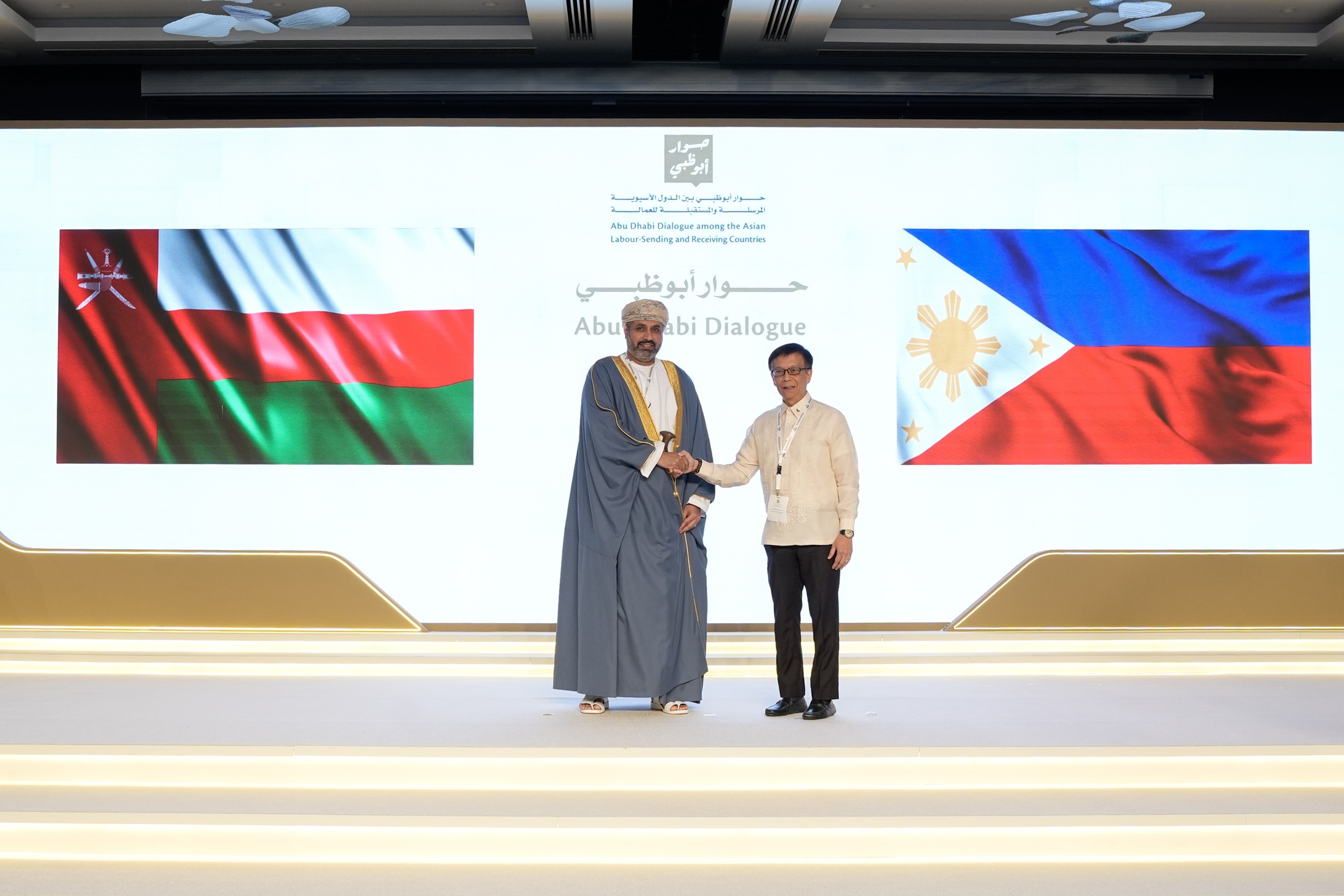 وسلمت سلطنة عمان في ختام الاجتماعات رئاسة الدورة التاسعة لحوار أبوظبي 2026 _ 2027 الى جمهورية الفلبين وسط اشادة الدول بالجهود التي بذلتها سلطنة عمان وثقتها بالرئاسة الجديد لجمهورية الفلبين متطلعين إلى فترة من التعاون البنّاء والتقدم خلال رئاستها، في ظل أهمية استدامة مسار حوار أبوظبي، والمكانة الإقليمية والدولية التي يحظى بها، والإنجازات الملموسة التي يحققها في مجالات إدارة مسار تنقل العمالة من الدول الآسيوية إلى دول الخليج العربي، وتعزيز المنافع التنموية لكل من اقتصاديات الدول المصدرة والمستقبلة للعمالة الآسيوية.