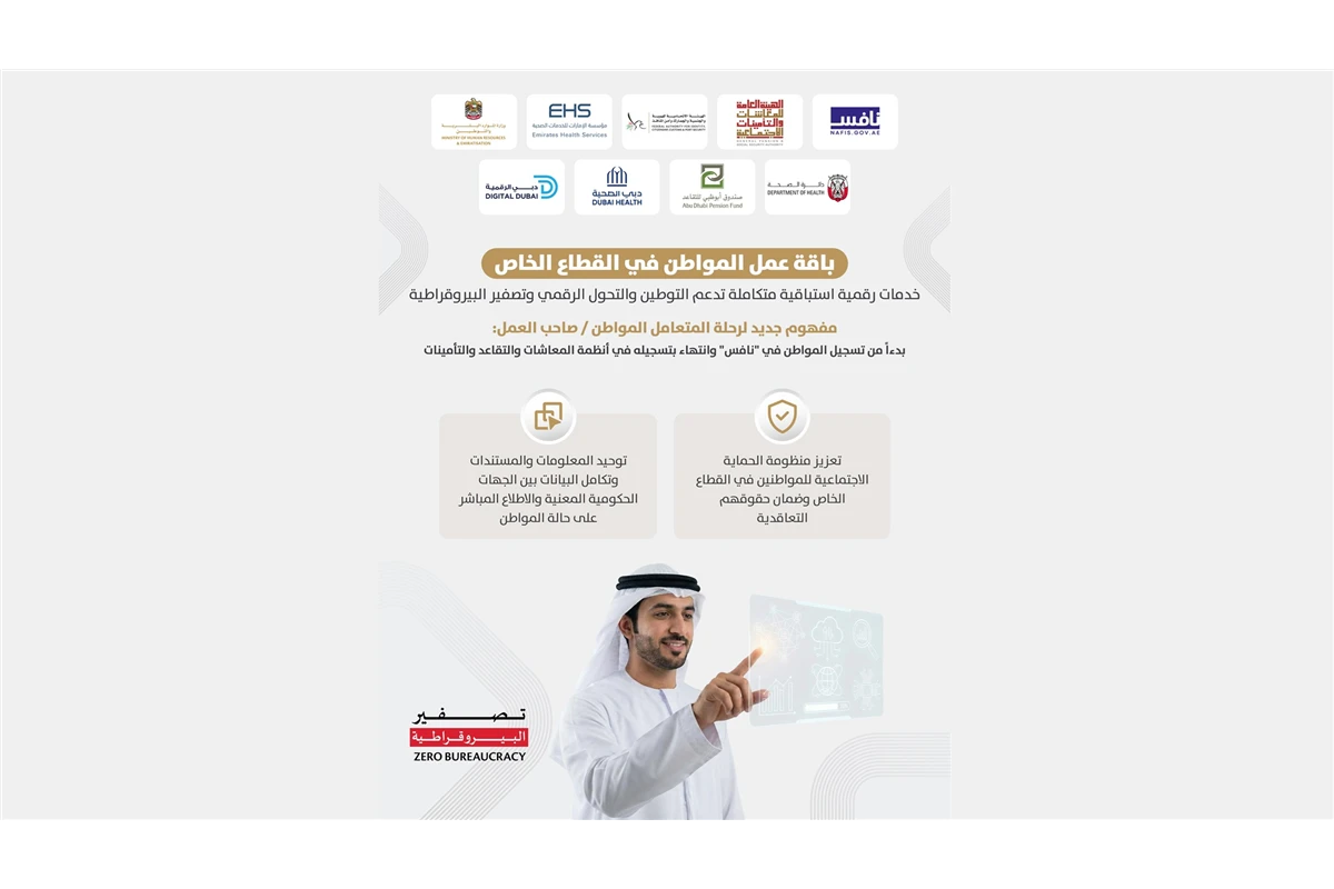 وتستهدف الباقة توحيد المعلومات والمستندات المطلوبة بين الجهات المنظمة وضمان تسجيل كافة المواطنين العاملين في القطاع الخاص في أنظمة المعاشات والتقاعد والتأمينات في الدولة وتعزيز تكامل الأنظمة الرقمية لتقديم خدمات سريعة وفعالة.