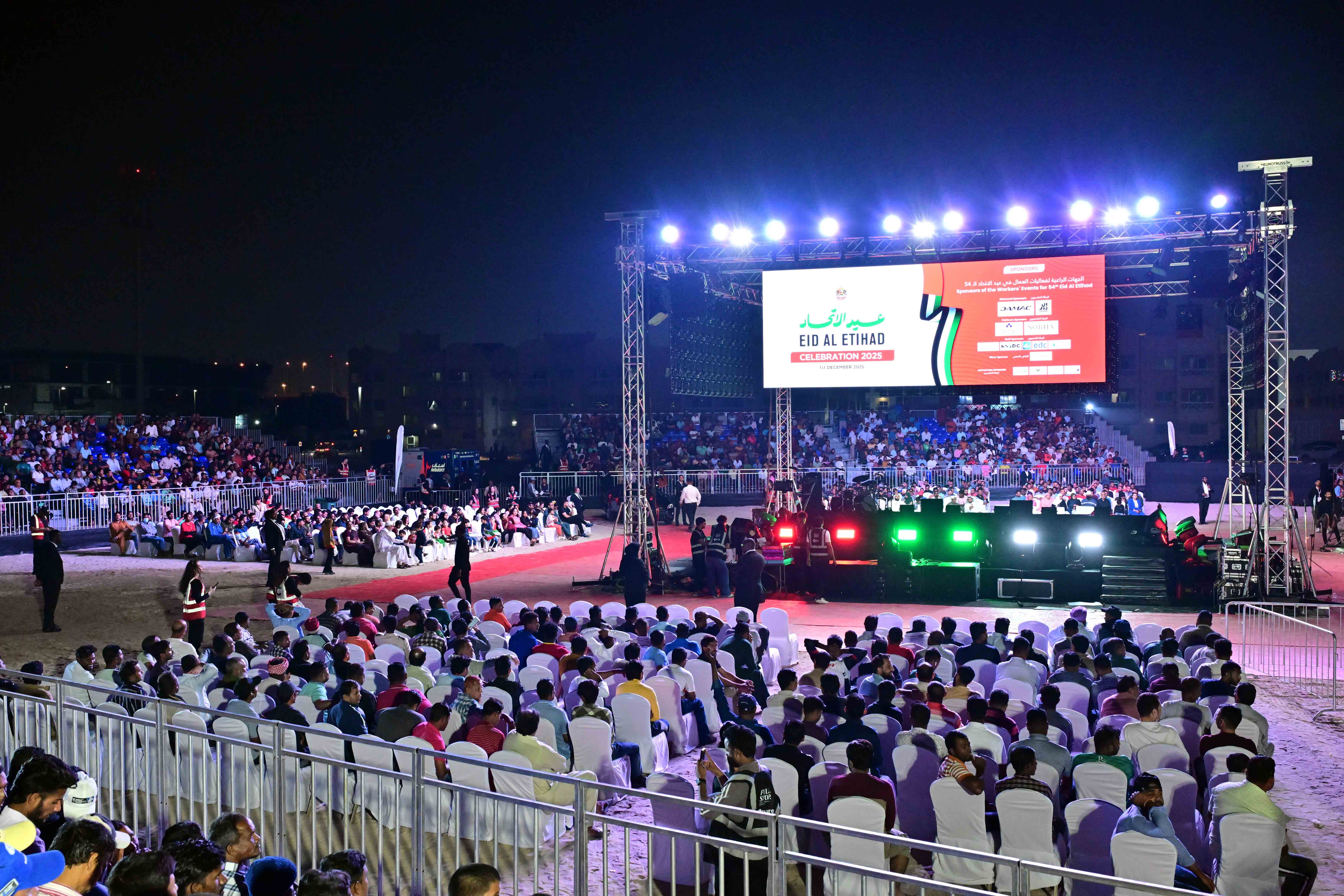 وتضمنت الفعاليات التي أقيمت تحت شعار " سعادة عمالنا في عيد اتحادنا "أنشطة تنافسية وتفاعلية وسحوبات على جوائز قيمة من ضمنها السحب على سيارة وتذاكر سفر وعروض ترفيهية ورقصات فلكلورية وتوزيع الهدايا على العمال في مواقع الاحتفالات التي نظمتها وزارة الموارد البشرية والتوطين بالتعاون مع وزارة الداخلية، والهيئة الاتحادية للهوية والجنسية والجمارك وأمن المنافذ، والقيادات العامة لكل من شرطة أبوظبي ودبي والشارقة، والبلديات على مستوى الدولة، ومجموعة موانئ أبوظبي، والإدارة العامة للإقامة وشؤون الأجانب في دبي.