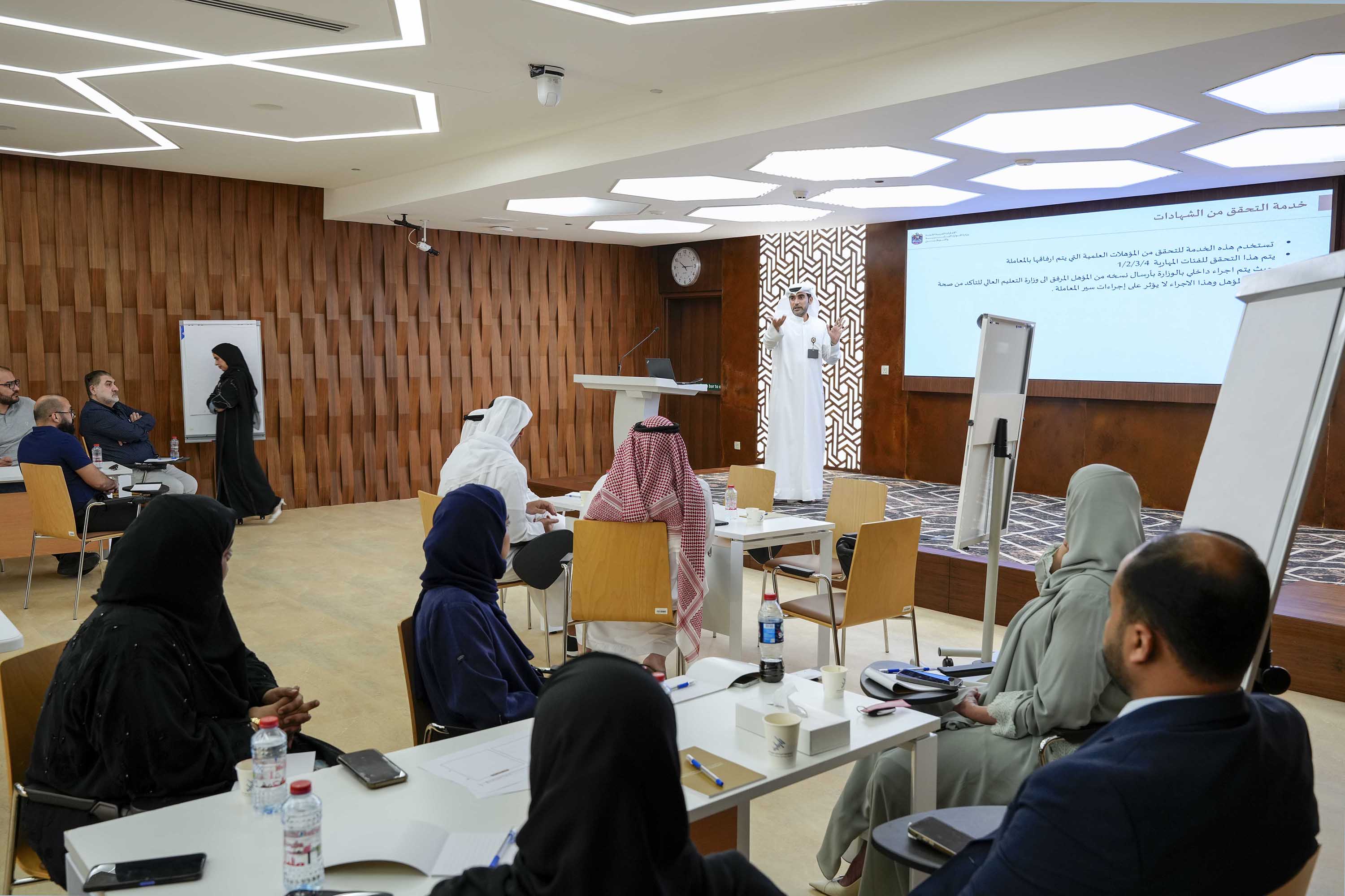 وأضاف أن المجالس تتيح للمتعاملين فرصة التعبير عن آرائهم ومقترحاتهم وتطلعاتهم بشكل مباشر، مما يعزز الشعور بالانتماء والمشاركة في تطوير الخدمات الحكومية، لأنها تشكل منصة للاطلاع المسبق على التحديات التي قد تواجه المتعاملين واقتراح حلول عملية، كما تسهم في استكشاف فرص التطوير والابتكار في تقديم الخدمات، مما يعزز الثقة والشفافية في بناء الثقة مع المتعاملين واستدامة العلاقة الإيجابية معهم، حيث أن مخرجات مجالس المتعاملين تعد مصدرًا مهماً في تصميم وتحسين الإجراءات والخدمات بما ينسجم مع تطلعات دولة الإمارات في التميز والريادة الحكومية.