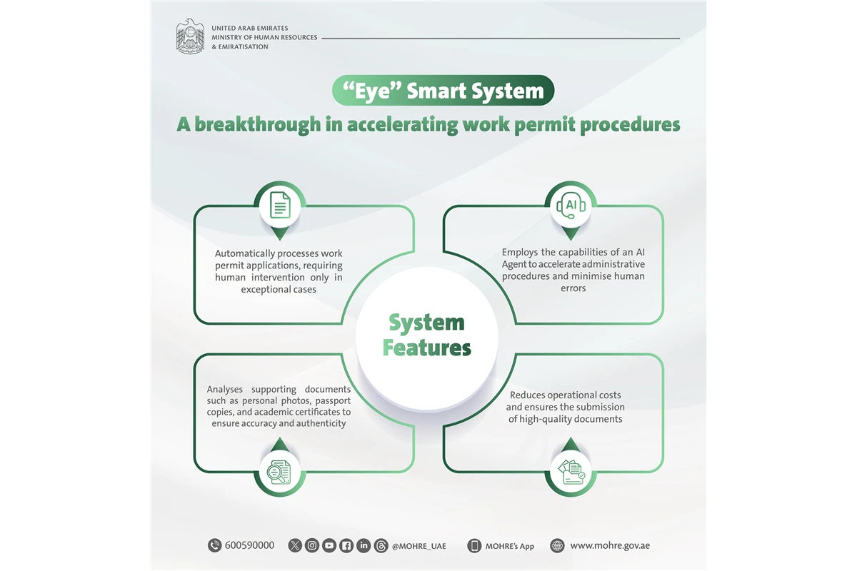 The Ministry of Human Resources and Emiratisation (MoHRE) launched its AI-powered system “Eye” during its participation at GITEX Global 2025, marking a significant advancement in accelerating work permit issuance by automatically processing applications and minimising the need for human intervention except in exceptional cases.