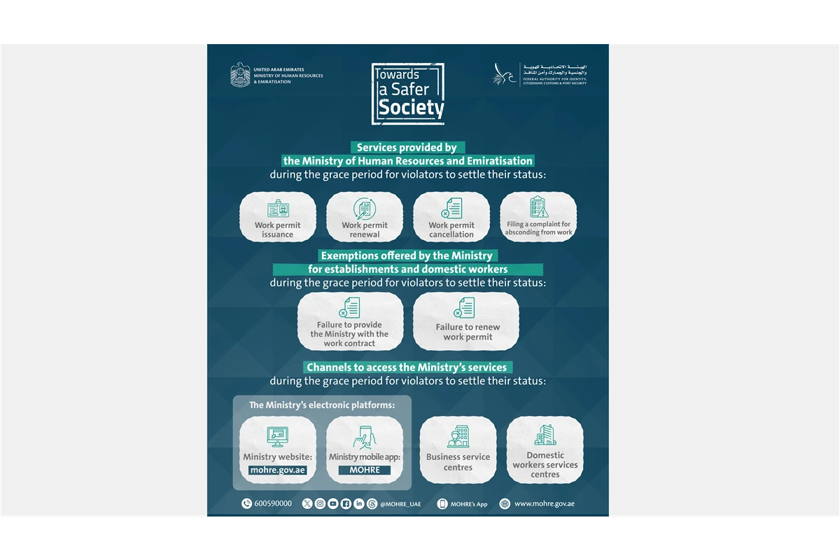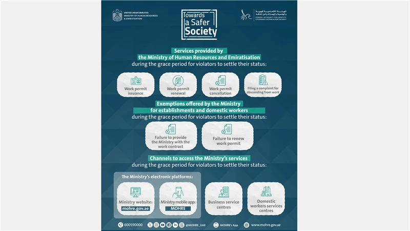 The Ministry of Human Resources and Emiratisation (MoHRE) has launched four services aimed at rectifying the status of violating workers and exempting establishments from administrative fines during a two-month grace period.